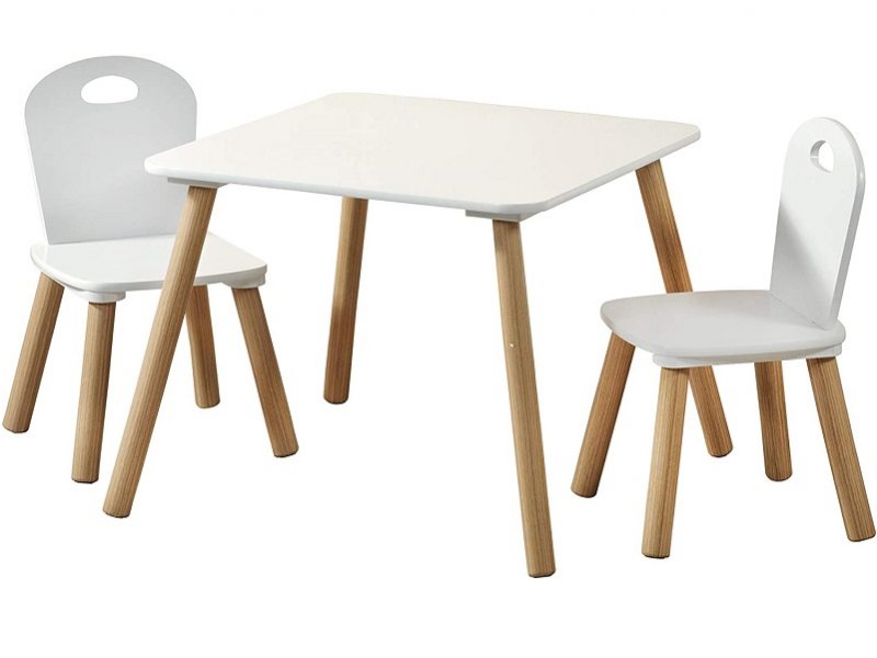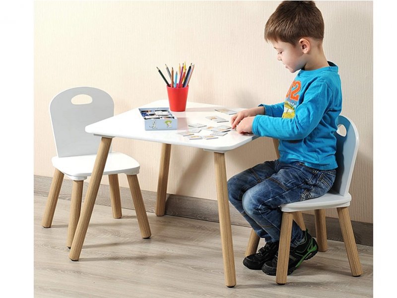 | Karakteristike | Materijal: ploča od vlakana (FSC®), Borovo drvo (FSC®) Bela boja Neophodna montaža Lako se čisti Laka konstrukcija Dimenzije : Sto: 55 X 55 X 45 cm, Dečije stolice: 27,5 X 27,5 X 50,5 cm |