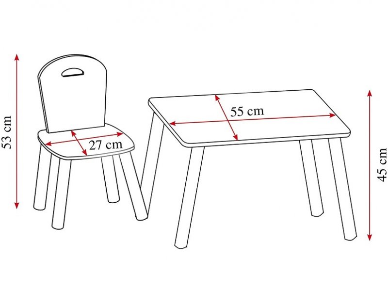 Sa dimenzijama od 55 x 55 x 45 cm za sto i 27,5 x 27,5 x 50,5 cm za stolice, ova garnitura je savršeno prilagođena dečijim potrebama. Laka konstrukcija i neophodna montaža čine ovaj sto i stolice lako postavljivim i čišćenjem, što je veliki plus za roditelje koji traže praktičan i funkcionalan komad nameštaja za svoju decu.