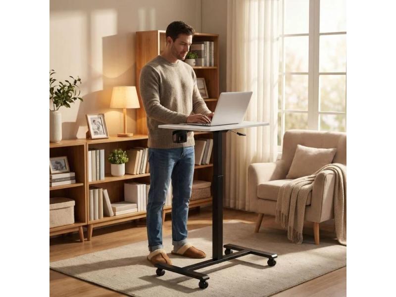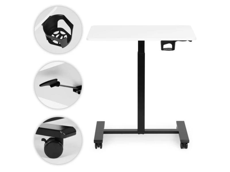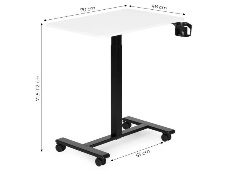 Model poseduje četiri točkića sa kočnicom, koji omogućavaju lako pomeranje stola i stabilno pozicioniranje nakon postavljanja na željeno mesto. Praktičan držač za čašu povećava komfor korišćenja i štiti opremu od slučajnog prosipanja tečnosti. Zahvaljujući maksimalnoj nosivosti od 25 kg, na sto možete bezbedno postaviti laptop, dokumenta i druge neophodne kancelarijske dodatke.