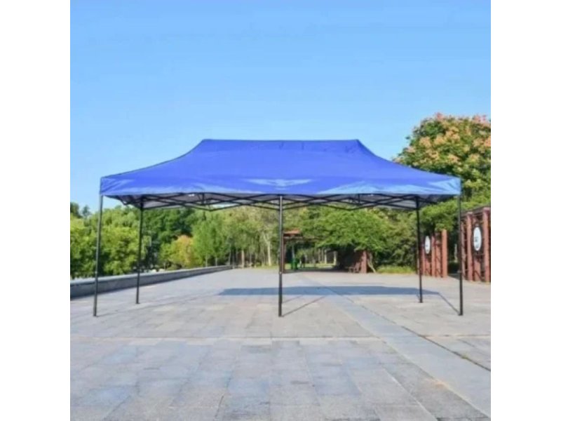 | Karakteristike | Materijal: • Krov od platna sa PVC vodootpornim premazom • Čelična konstrukcija visoke čvrstoće Dimenzije: • Dimenzije: 3 × 3 × 6 m Konstrukcija: • Čelične cevi: • 12 × 23 × 0.6 mm • 25 × 25 × 1 mm • 30 × 30 × 0.7 mm Dodatna oprema: • Ugaoni konopci za stabilizaciju • Spojni elementi za dodatnu čvrstinu konstrukcije boja - plava |