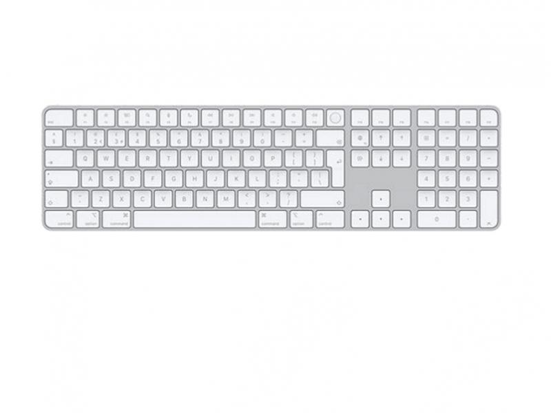 Magic tastatura sa Touch ID i numeričkim delom pruža udobno i precizno isustvo kucanja. Ona dolazi sa proširenim raspored tastera sa kontrolama za brz prelaz i strelice u punoj veličini, koje su idealne za gejming. Numerički tasteri su idealni za tabelarne aplikacije. Ona je bežična i može da se puni, a poseduje dugotrajnu bateriju koja može da radi mesec dana ili duže sa jednim punjenjem. Automatski se povezuje sa tvojim Mac računarom, pa možeš odmah početi da je koristiš. Uključuje pleteni USB-C na Lightning kabl sa kojim možeš da povežeš ovu tastaturu sa USB-C ulazom na tvom računaru.