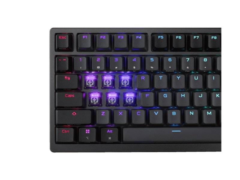 | Karakteristike | Tip tastature Mehanička Povezivost tastature Žična, Bežična Tip povezivosti tastature USB, Bluetooth®, RF 2.4GHz Slovni raspored tastera EN (US) Dodatni tasteri Točkić Osvetljena tastatura RGB osvetljenje Ostale osobine Aura Sync RGB, 8.000Hz Report rate, ROG HFX V2 Magnetic Switch, ROG Hall Sensor, Gear Link Aplikacija, OLED ekran osetljiv na dodir u boji Napomena Potpuno programabilni tasteri Napajanje Punjiva baterija |