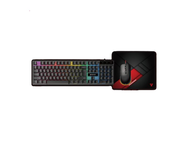 | Karakteristike | Tastatura Tip: Membranska sa RGB pozadinskim osvetljenjem i multimedijalnim tasterima Ukupno tastera: 104 Broj klikova: 8 miliona Veličina: 440*130*30 mm Miš Podesiv DPI (400-3600) Brzina/Akceleracija: 30 ips/8G ubrzanje Huano tipke sa vekom trajanja od 10 miliona klikova Kabl od pletenog najlona Dimenzije: 122*67*40mm |