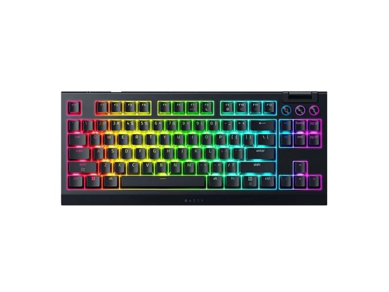 | Karakteristike | Taktilni svičevi Razer Mechanical Switches Gen-3 TKL dizajn Hybrid On-Board memorija Do 5 profila Multimedijalni tasteri Doubleshot ABS kapice Razer Snap Tap Razer Synapse 4 Polling rate: 1000Hz N-key Rollover/Anti-ghosting Moguće istovremeno povezivanje više uređaja (do 3) 2-u-1 alat za uklanjanje prekidača i kapica tastera (Switch & Keycap Puller) Set: Ne Veličina tastature: Tenkeyless (TKL) Slovni raspored: EN (US) Model mikroprekidača: Razer Mechanical Switches Gen‑3 Nisko-profilni tasteri: Ne Anti-ghost tasteri: Da Odziv (polling rate): 1000 Hz / 1 ms Memorija tastature: Da Broj profila: 5 Multimedijalni tasteri: Da Oslonac za dlanove: Ne Odvojiv kabl: Da Izdržljivost tastera: Do 100 miliona pritisaka Pozadinsko osvetljenje: Da Opis pozadinskog osvetljenja:RGB Razer Chroma osvetljenje Program za podešavanja: Da Povezivanje: USB prijemnik / Bluetooth Frekvencija: 2.4 GHz Autonomija baterije: Do 40 dana Autonomija baterije: do 980 h Ostale karakteristike baterije:Podržava tehnologiju brzog punjenja Napomena: Slovni raspored tastature i oblik tastera prikazanih na slikama ne mora nužno da odgovara podacima navedenim u specifikacijama proizvoda. Brend: Razer Tip tastature: Bežična tastatura Tip tastera: Mehanički tasteri |
