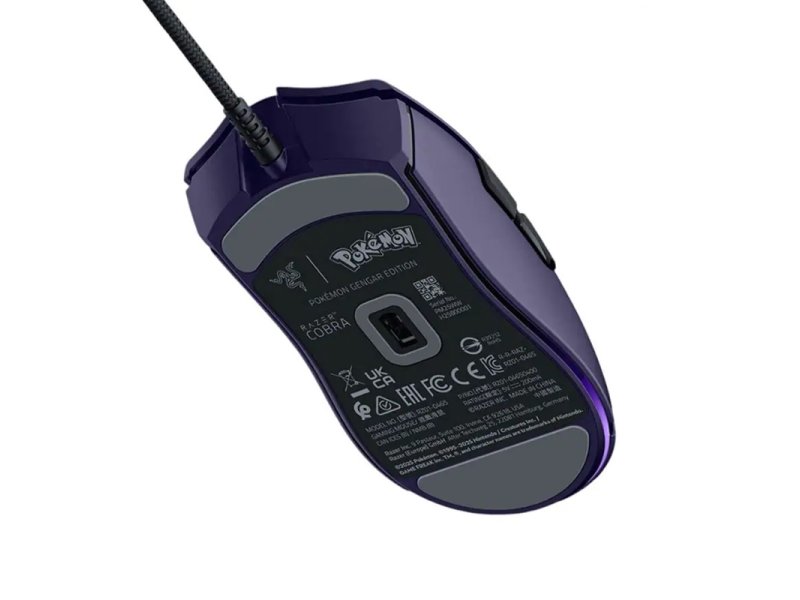 | Karakteristike | Proizvođač: Razer Model: Cobra Pokémon Gengar Edition Senzor: Optički senzor od 8500 DPI Brzina praćenja: 300 IPS Ubrzanje: 35 G Izdržljivost tastera: Do 90 miliona klikova Broj tastera: 6 (programabilni) Osvetljenje: Razer Chroma™ RGB – 16.8 miliona boja Povezivanje: Žično – Razer Speedflex Cable Dimenzije: 119.6 × 62.5 × 38.1 mm Težina: 58 g |