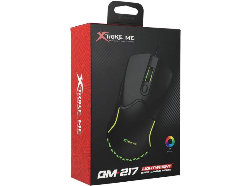 Karakteristike | Senzor: Optički Broj tastera: 6 Podesivost rezolucije: 1200-1800-2400-3600 DPI Životni vek tastera: 3 miliona klikova Brzina pozivanja: 125Hz Pozadinsko osvetljenje: RGB (7 boja) Radni napon: 5V Radna struja: 50mA Interfejs: USB 2.0 Dužina kabla: 1,5 m Težina: 68 g Dimenzije: 127 x 66 x 39 mm ± 2mm Podrška za OS: Windows XP ili noviji |
