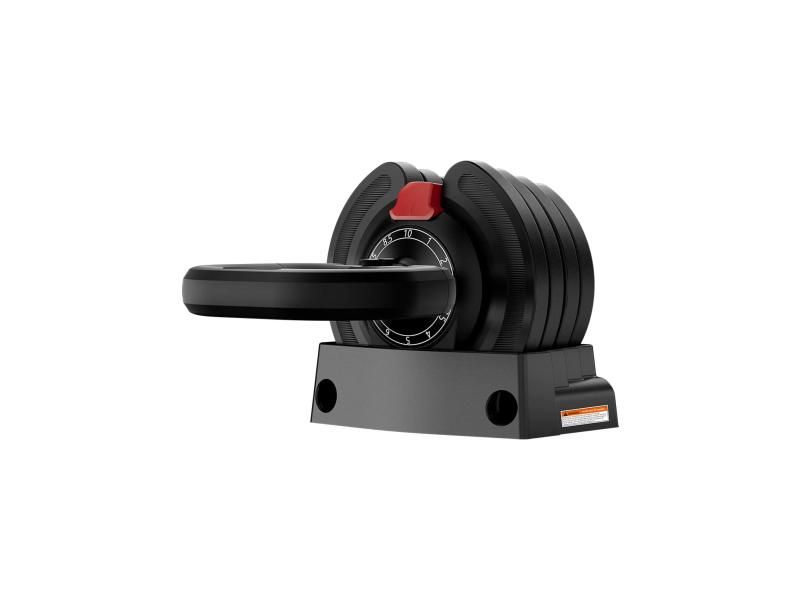 Pudarva ima podešavanje težine od 1 do 10 kg što omogućava trening sa različitim opterećenjima za celo telo, usmeren na različite mišićne grupe kao što su noge, leđa, grudi, stomak, ramena i ruke. Uključena je postolja za skladištenje koja drži tegove daleko od poda, obezbeđujući uredan prostor za trening, idealan za kućni komfor. Jedinstveni patentirani sistem garantuje da se pudarva može podešavati samo na postolju, obezbeđujući sigurnu i neometanu vežbu. Zahvaljujući neklizajućoj dršci sa silikonskim premazom poboljšava se kontrola i stabilnost. Visokokvalitetni čelik, polipropilen i aluminijum garantuju izdržljivost pri višekratnoj upotrebi, ne zadržavaju mirise i nema opasnosti od rđe.