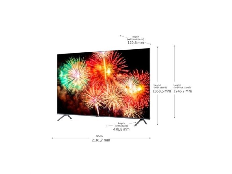 | Fizičke karakteristike | VESA dimenzije: 800 x 400 Dimenzije sa postoljem: 2181.7 x 1358.5 x 478.8 mm Težina bez postolja: 59 kg Težina sa postoljem: 63 kg |