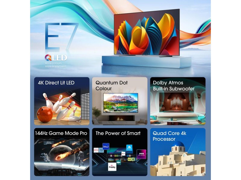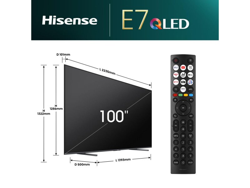 | Smart funkcije | Operativni sistem: VIDAA Smart OS Wi-Fi: Da, IEEE 802.11 a/b/g/n/ac 2.4G, 5G Bluetooth: Da Upravljanje: Izdavanje glasovnih komandi Aplikacije: YouTube, Netflix, Games, Deezer, Rakuten TV, DAZN, Plex, Disney+, UEFA TV, Redbull TV, NBA, Kidoodle TV, Toon Goggles, EON, Hungama Play, Prime Video, FIFA+, SWEET.TV, Apple TV+, AccuWeather, App Store, VIDAA Art, VIDAA Free, Tet+, YouTube kids |