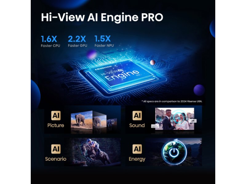 | Ekran | Dijagonala ekrana: 100” (254 cm) Rezolucija: 4K Ultra HD (3840 x 2160) Tip ekrana: ULED Pozadinsko osvetljenje: Mini LED Kontrast: 5000:1 Osvežavanje: 165 Hz Odnos stranica: 16:9 Uglovi gledanja: 178 stepeni horizontalni Ostalo: HDR 10, HDR10+ Adaptive, 4K HDR Immersive, HLG, Dolby Vision, Wide Color Gamut, Local dimming, Quantum Dot tehnologija, Dolby Vision IQ, IMAX Enhanced, Odziv 6ms, AI 4K Upscaler, Game Bar, AI Sports Mode, Infinity Vision, Total HDR Solution, AI HDR Upscaler, AI Scenario, Anti-Reflective |
