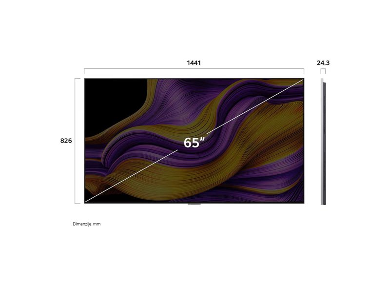 | Ekran | Dijagonala ekrana: 65" Rezolucija: 4K Ultra HD 3840 x 2160 Tip ekrana: 4K OLED Osvežavanje ekrana: 120Hz (VRR 165Hz) Wide Color Gamut: OLED Color |