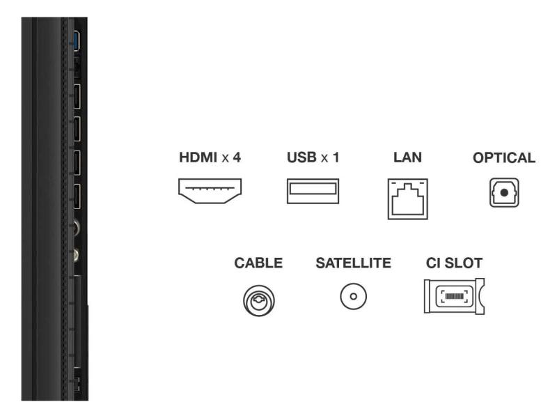 | Priključci / Slotovi | HDMI 2.1 priključak: 4 USB 2.0 priključak: 1 2 x RF ulaz CI Slot Digitalni optički audio izlaz LAN priključak Bežična veza: Wi-Fi 5 Bluetooth 5.4 |