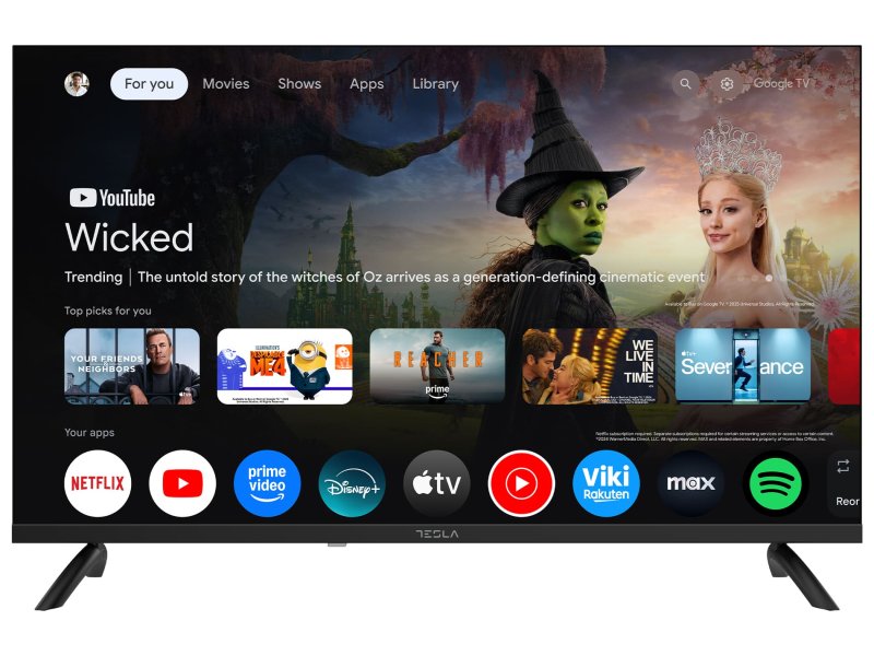 | Smart funkcije | Operativni sistem: Google TV Funkcije: Google Cast, Google Assistant, HbbTV Preinstalirane aplikacije: Gogle Play, Netflix, Prime video, YouTube, Media player… Podržane aplikacije: Deezer, Spotify, YouTube kids, VLC player, KODI, Disney+, MAX… RAM memorija/Interna memorija: 1GB / 64GB CPU: ARM cortex QuadCore A55@1450MHz GPU: Mali G31 MP2 |