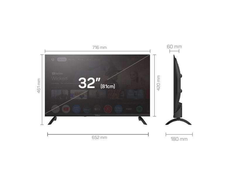 | Ekran | Dijagonala ekrana: 32” (81 cm) Tip ekrana: DLED, 8bit, VA Rezolucija ekrana: 1366 x 768 Osvežavanje ekrana: 60Hz Osvetljenost: 260 cd/m² Dinamički contrast: 5000:1 Ugao gledanja: 170°/170° Vreme odziva: 6.5 ms |