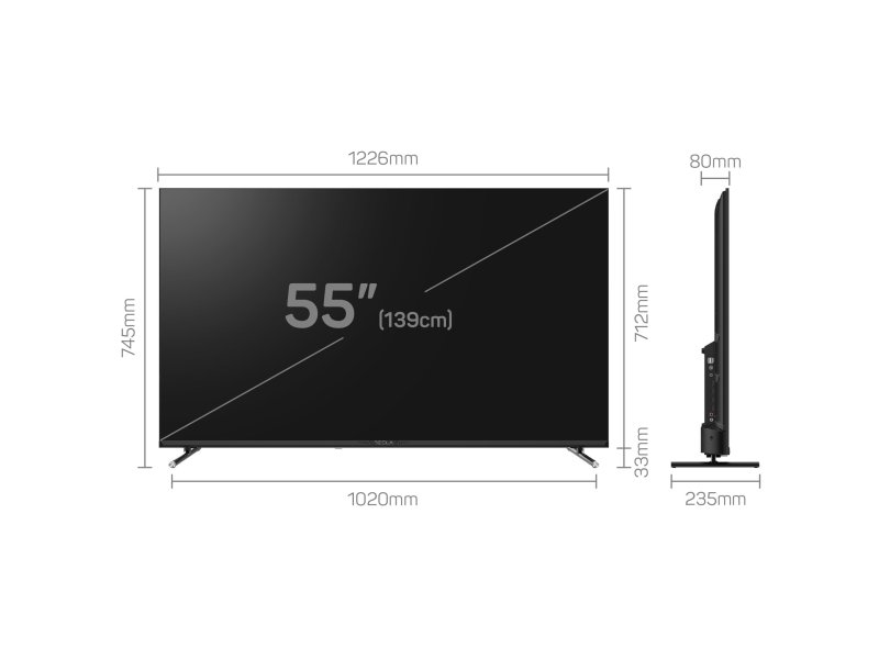 | Ekran | Veličina ekrana: 55” (139 cm) Tip ekrana: 10bit, VA Rezolucija ekrana: 4K UHD (3840 x 2160) Osvežavanje ekrana: 60Hz Osvetljenost: 270 cd/m² Dinamički contrast: 5000:1 Ugao gledanja: 170°/170° Vreme odziva: 6.5 ms |
