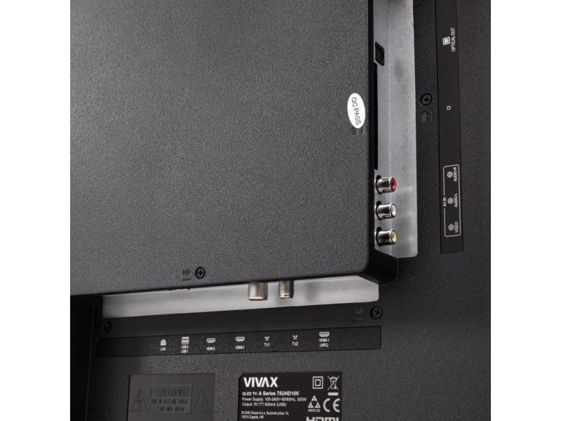Priključci / Slotovi | HDMI: 3 × HDMI 2.0 USB: 2 × USB 2.0 LAN: RJ45 Ethernet Antenski priključci: RF, satelitski F Audio izlaz: Optički SPDIF AV ulaz (RCA): 3 × RCA |