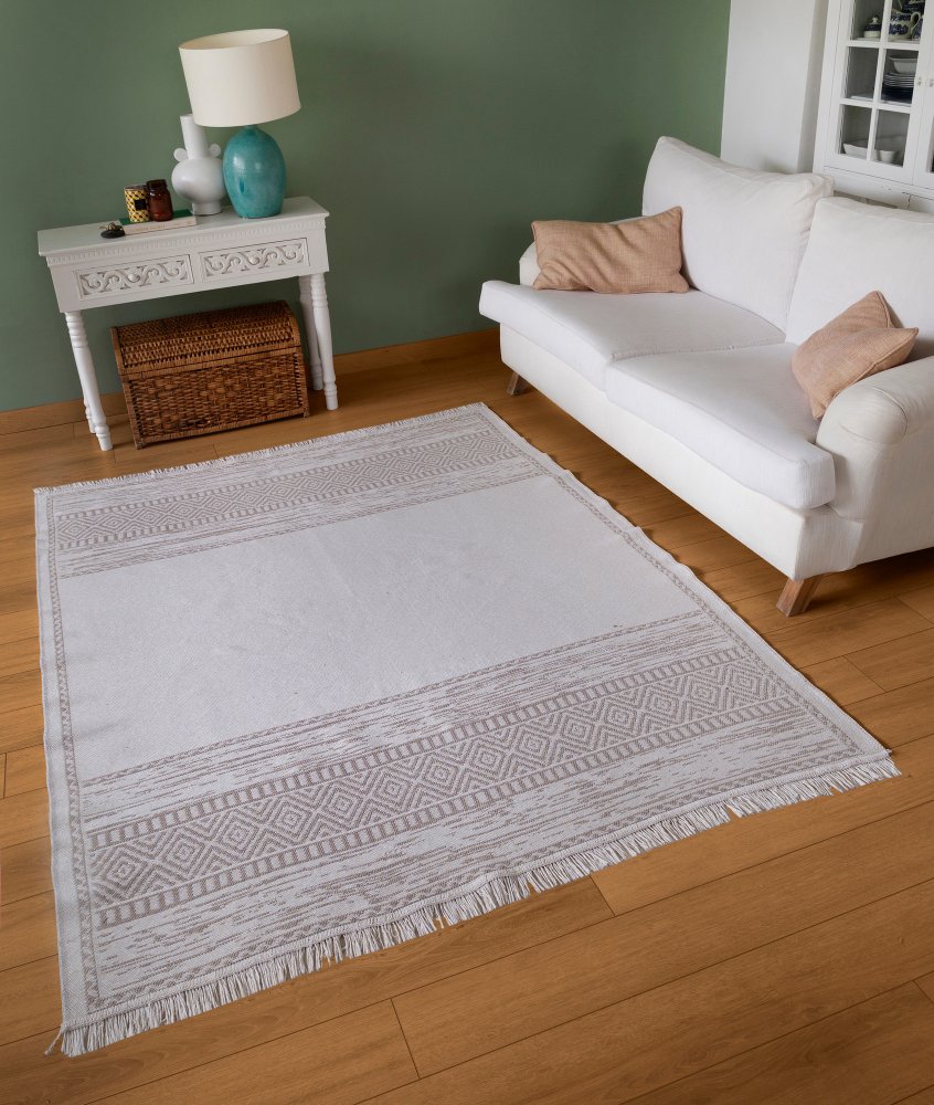 specifikacija | Tepih 23003A White Beige 120 x 180 100% Pamuk Visina tkanine: 1 mm Reverzibilno Veličina: 120 x 180 cm Tkani tepih Cotton podloga Napomena: • Neklizajuća podloga. • Digitalno štampanje. • Nemojte koristiti izbeljivač • Može se koristiti usisivač • Antibakterijski. |