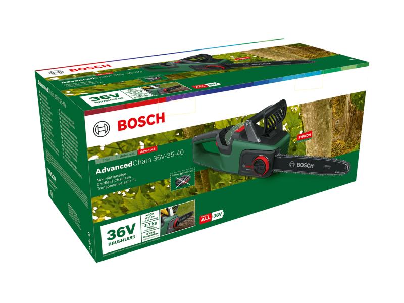 Uspešno održavanje bašte i izlazak na kraj s velikim granama i cepanicama s lakoćom zahvaljujući performansama snažnog motora bez četkica akumulatorske testere AdvancedChain 36V-35-40. Ujednačeno i neprekidno rezanje čak i najtvrđih drva i čvorova zahvaljujući OptiCut tehnologiji regulisanja brzine, koja predviđa sva zastajanja i skladu sa tim prilagođava obrtni moment. Baštenski hobi majstori će uživati u balansiranom, laganom rukovanju, praktičnoj montaži pomoću SDS sistema bez upotrebe alata, kao i QuickStop kočnica protiv povratnog udarca koja uliva sigurnost. Integrisana Bosch Syneon tehnologija pruža optimalnu snagu i maksimalno vreme rada. Alat pripada sistemu 36V POWER FOR ALL. Za sve 36V POWER FOR ALL alate može se koristiti jedan akumulator.