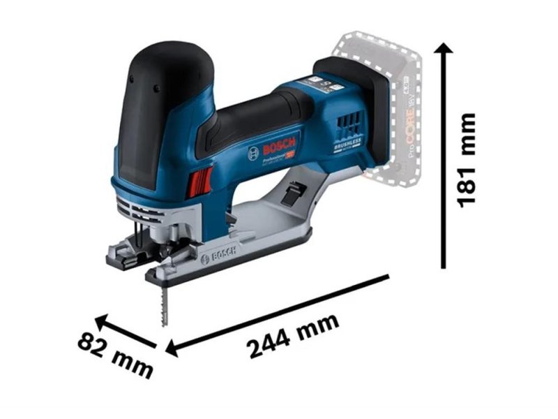 Idealna je za krivolinijske i poprečne rezove u punom drvetu, iverici i kompozitnim materijalima od drveta, kao i za deblje ili tvrđe materijale. Kompatibilan je sa vođicama preko adaptera i sa svim Bosch Professional akumulatorima i punjačima od 18 V (profesionalni sistem od 18 V). Alat je kompatibilan i sa AMPShare sistemom akumulatora većeg broja brendova.