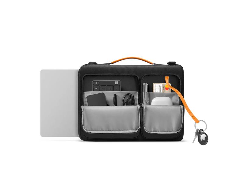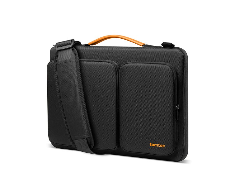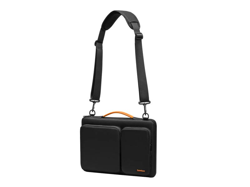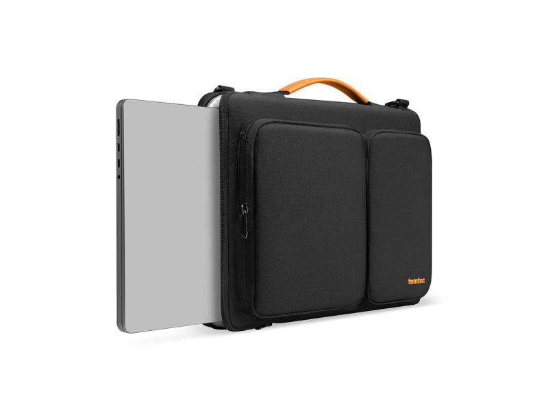 Tomtoc Defender A42 je zaštitna torba za laptop do 14,4 inča, sa ojačanim uglovima i mekanom unutrašnjom postavom koja štiti uređaj od udaraca i ogrebotina. Napravljena je od vodootpornog recikliranog materijala i ima praktične prednje džepove za punjače i dodatke, kao i rukohvat i odvojivi naramenicu za lako nošenje.