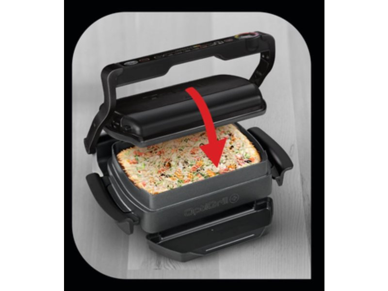 | Ostalo | 6 programa kuvanja (burgeri, živina, sendviči, kobasice, crveno meso, riba) i automatsko podešavanje temperature svakoj vrsti hrane za savršenu pripremu Indikator nivoa kuvanja, za pokazivanje nivoa pečenja, od slabo do dobro pečenog Merenje debljine za prilagođavanje kuvanja svakoj debljini i količini hrane Program za smrznutu hranu i manuelni način rada sa 4 nivoa temperature za kuvanje bilo čega onako kako želite, uključujući voće i povrće 600 cm2 površina za pečenje (kapacitet za 2 do 4 osobe) sa aluminijumskim pločama sa nelepljivom oblogom Velika tacna za sokove i ploče sa uglom od 7° za odlivanje sokova Demontažne ploče i tacna za sokove mogu da se peru u mašini za posuđe Dodatak "Baking & Snacking" za male obroke i testa |