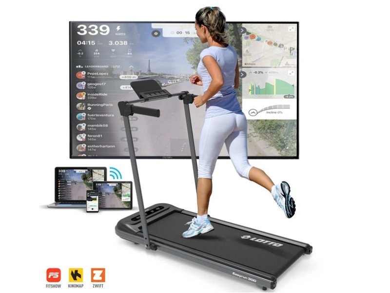 | Karakteristike | Motor: 1,5 HP Brzina: 1 – 10 km/h Funkcije računara: brzina, vrijeme, udaljenost, kalorije; Podrška za tablet/pametni telefon; Držač za tablet/pametni telefon; staklo Efektivna površina za trčanje: 100 x 40 cm; Dimenzije u sklopljenom obliku: 124,8 x 63,2 x 106,8 cm; Dimenzije u sklopljenom stanju: 128,8 x 63,2 x 12,7 cm; Transportni točkovi za lakši transport; 95% sastavljeno u kutiji Sistem za apsorpciju vibracija; Težina trake: 25,6 kg (bruto), 23 kg (neto) podešavanje brzine putem daljinskog upravljaca |