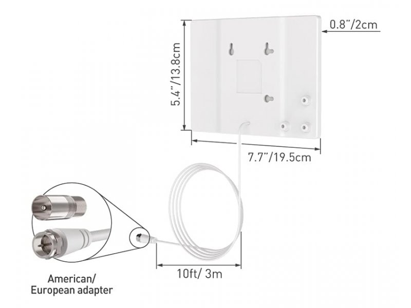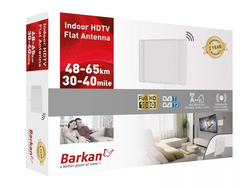 BARKAN AF40P.W Indoor HDTV Flat TV Antenna 65 km
