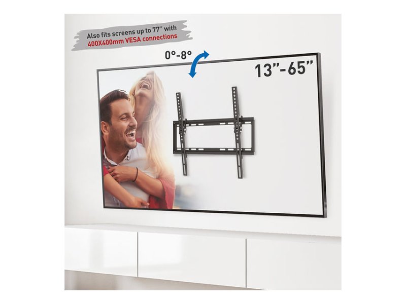 | Karakteristike | Tip: Zidni nosač za televizor Montiranje: VESA 100mm x 100mm, VESA 200mm x 200mm, VESA 75mm x 75mm, VESA 400mm x 400mm, VESA 400mm x 200mm, VESA 300mm x 300mm, VESA 200mm x 100mm, VESA 400mm x 300mm, VESA 100mm x 200mm, VESA 300mm x 400mm, VESA 300mm x 200mm, VESA 200mm x 300mm, non-VESA do 400mm x 400mm Podržane dijagonale: 13 inča - 65 inča Nosivost: 36 kg Rastojanje od zida: 20.5 mm Dodatne mogućnosti: Tilt Uglovi pomeranja: Tilt 0 stepeni +8 stepeni |