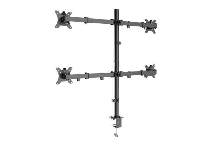 | Karakteristike | Savršeno pozicionirajte svoj ekran Lagan i nagibni dizajn -Nosač za sto za monitor za četiri monitora. -Nosači omogucavaju okretanje, produžavanje, uvlačenje ili naginjanje ekrana i omogucavaju rotiranje ekrana iz pejzažnog u portretni režim, itd. -Izdržljiva i jaka stezaljka za sto za lako i sigurno fiksiranje na stolu. -Praktične kopče za kablove u nosačima. -Radi sa skoro svim LCD monitorima (max. 32"). -VESA kompatibilno, max. 100 x 100 mm. Materijal: čelik, plastika Površinska završna obrada: praškasti premaz Boja: crna Podržana veličina ekrana: 13"-32" Nosivost (po ekranu): 10 kg VESA kompatibilno: 100x100, 75x75 mm Opseg nagiba: +45°~-45° Opseg okretanja: +90°~-90° Rotacija ekrana: +180°~-180° Instalacija: Stezaljka za sto Maksimalna debljina stezaljke za sto: 10 ~ 50 mm Upravljanje kablovima: da |