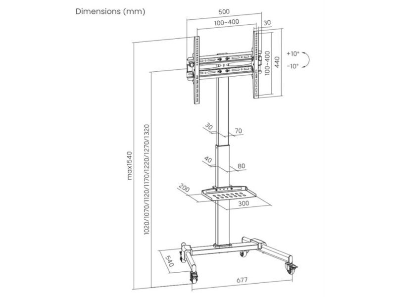 Dimenzije: 677 x 540 x 1240~1540 mm