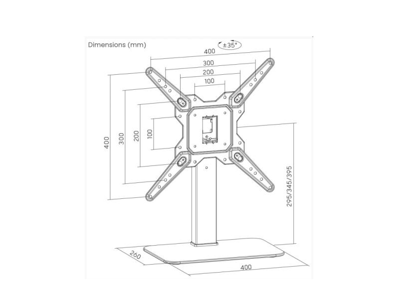 | Karakteristike | Stilan dizajn sa postoljem od kaljenog stakla Integrisana prakticna funkcija upravljanja kablovima minimizira vidljivost kablova Obrtna baza omogucava rotiranje televizora u savrsen ugao gledanja - Stoni TV stalak sa postoljem od kaljenog stakla - Podrzava vecinu LCD televizora od 23” - 55” - Omogucava okretanje do 70 stepeni - Podesavanje visine u 3 stepena odgovara razlicitim velicinama televizora i omogucava bolju visinu -gledanja - VESA kompatibilno, maks. 400 mm x 400 mm - Integrisano upravljanje kablovima Materijal: Celik, plastika, kaljeno staklo Boja: crna Podrzana velicina ekrana: 23" - 55" VESA podrska: 100x100, 100x200, 200x100, 200x200, 300x200, 400x200, 300x300, 400x300, 400x400 Nosivost: 40 kg Podesavanje visine: 295 / 345 / 395 mm Opseg okretanja: -35°/+35° Ugao nagiba TV-a: n/d Upravljanje kablovima: Da Dimenzije: 430 x 200 x 609 mm |