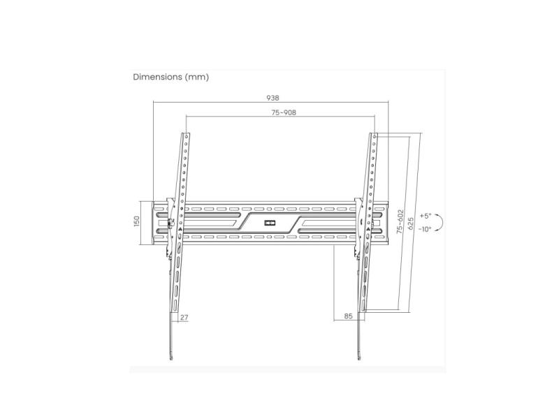 | Karakteristike | Savrseno pozicionirajte ekran Lagan i nagibni dizajn - Zidni nosac za LCD ekran od izdrzljivog celika - Podrzava vecinu LCD televizora od 43” - 100” - VESA kompatibilan, maks. 900 mm x 600 mm - Omogucava naginjanje do 15 stepeni - Dugmad za lako drzanje za brzo podesavanje naginjanja - Automatske opruzne brave sa kablovima za brzo otpustanje omogucavaju brzo i jednostavno fiksiranje i uklanjanje televizora - Prakticna integrisana libela za savrseno poravnanje - Udaljenost od zida: 85 mm - Ukljucuje sav potreban materijal za montazu Materijal: celik Povrsinska zavrsna obrada: praskasti premaz Boja: crna sa finom teksturom Podrzana velicina ekrana: 43"- 100" VESA kompatibilno: 75x75, 100x100, 100x150, 150x100, 100x200, 200x100, 150x150, 200x200, 200x300, 300x200, 200x400, 400x200, 300x300 300x400, 400x300, 600x200, 500x300, 400x400, 600x300, 500x400, 400x600, 600x400, 700x400, 800x400, 600x600, 800x500, 800x600, 900x600 mm Nosivost: 75 kg Udaljenost od zida: 85 mm Opseg nagiba: 5° / -10° Opseg okretanja: n/d Nivo ekrana: n/d Montaza: puni zid, dvostruki nosac (406 mm / 450 mm / 600 mm) |