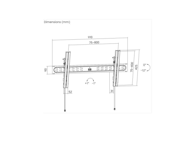 | Karakteristike | Savrseno pozicionirajte svoj ekran Lagan i ultratanki dizajn sa mogucnoscu naginjanja Jedinstveni magnetni krajevi trake omogucavaju sakrivanje traka za brzo otpustanje kada se ne koriste - Profesionalni celicni nosac za zid za LCD ekran sa ultratankim dizajnom sa mogucnoscu naginjanja - Podrzava vecinu LCD televizora od 43” - 95” - VESA kompatibilan, maks. 800 mm x 400 mm - Omogucava naginjanje do 12 stepeni - Zastitne podloge na nosacima obezbedjuju stabilnost i sprecavaju ogrebotine - Dizajn sa slobodnim naginjanjem za lako podesavanje ugla televizora napred ili nazad - Automatske opruzne brave sa kablovima za brzo otpustanje omogucavaju brzo i jednostavno -fiksiranje i uklanjanje televizora - Prakticna integrisana libela za savrseno poravnanje - Udaljenost od zida: 31 mm - Ukljucuje sav potreban materijal za montazu Materijal: celik Povrsinska zavrsna obrada: praskasti premaz Boja: fino teksturirana crna Podrzana velicina ekrana: 43"- 95" VESA kompatibilnost: 200x200, 300x200, 400x200, 300x300, 400x300, 400x400, 600x400, 800x400 Nosivost: 60 kg Profil: 31 mm Opseg nagiba: 0° / -12° Okretanje opseg: n/d Nivo ekrana: +1° / -1° Instalacija: puni zid, dvostruki stub (406 mm / 450 mm / 600 mm) |
