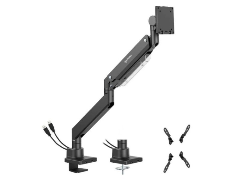 | Karakteristike | Zglobna ruka sa dvostrukom vezom za podršku jednog monitora od 17" до 57". Ravni monitor od 2 do 27 kg. Zakrivljeni monitor od 2 do 22 kg. Idealan za ultra široke monitore 21:9 i 32:9 Optimizovani nagib od +60 do -20° Okretanje od 180° Podešavanje visine od 325mm do 655mm USB portovi (integrisani kablovi): USB-A muški na USB-A ženski kabl, dužine 1.8 m, USB-A muški na USB-C ženski kabl, dužine 1.8 m |