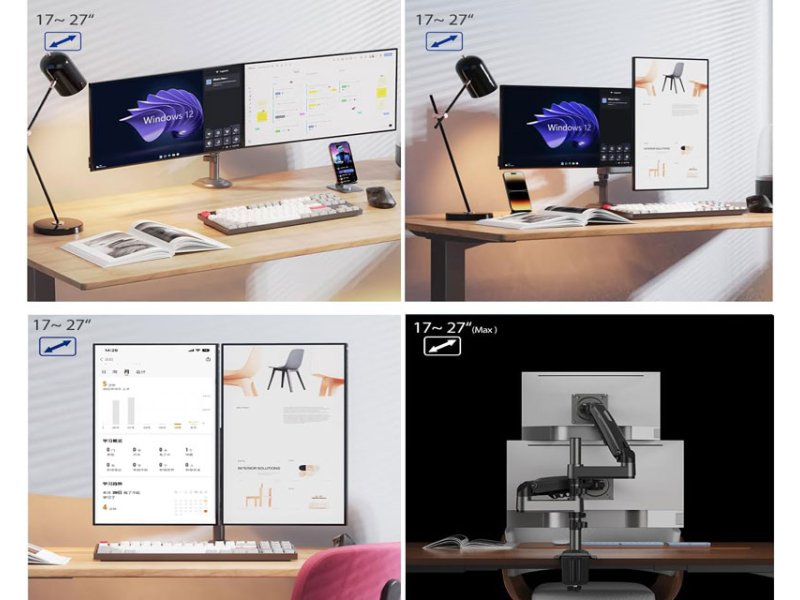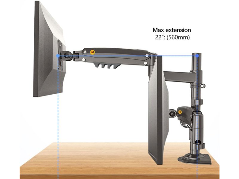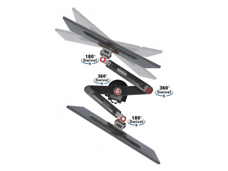 | Karakteristike | Tip: Stoni nosač za monitor Montiranje: VESA 100mm x 100mm, VESA 75mm x 75mm Podržane dijagonale: 17 inča - 27 inča Nosivost: 2x 9kg Dodatne mogućnosti: Swivel, Tilt, Rotiranje, Podesivost po visini Uglovi pomeranja: Rotacija ekrana 360 stepeni, Swivel ± 90 stepeni, Tilt -30 stepeni +85 stepeni, Upright 260mm Ostalo: Montaža dva monitora |