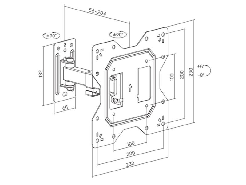 VESA: 75 x 75, 100 x 100, 200 x 100, 200 x 200