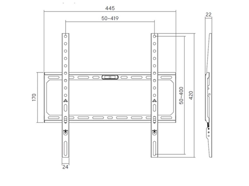 VESA: 50 x 50, 75 x 75, 100 x 100, 200 x 100, 200 x 200, 200 x 400, 400 x 400