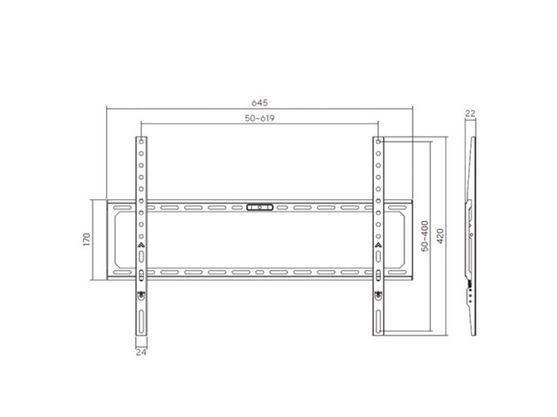 VESA: 50x50, 75x75, 100x100, 200x100, 200x200, 200x400, 300x300, 400x400, 600x300, 600x400