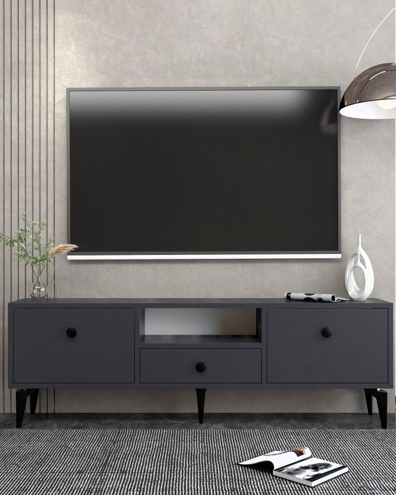 HANAH HOME TV polica 1300 DROP 1 Anthracite Black