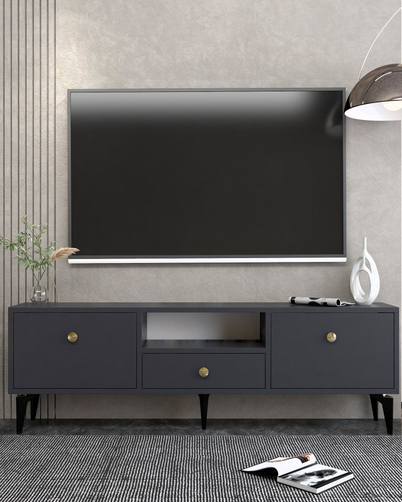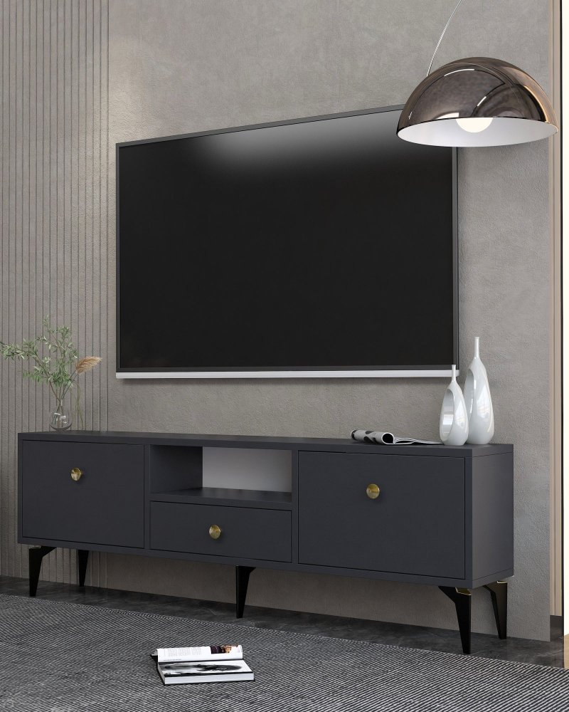 HANAH HOME TV polica 1300 DROP 1 Anthracite Gold