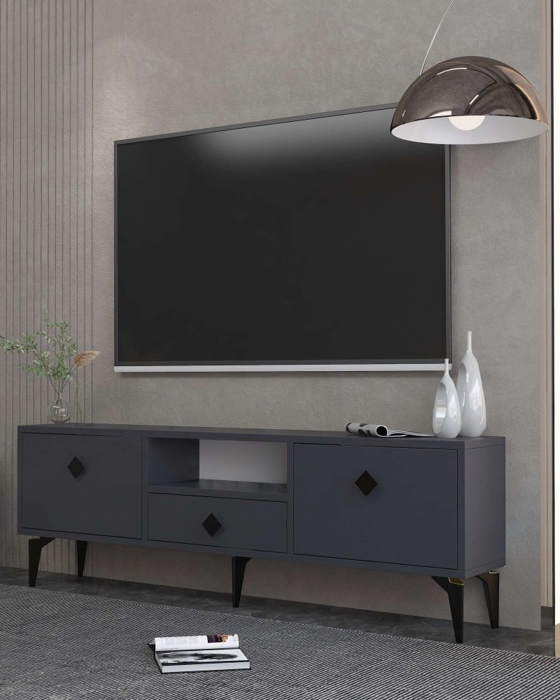 HANAH HOME TV polica 1304 DROP 1 Anthracite Black