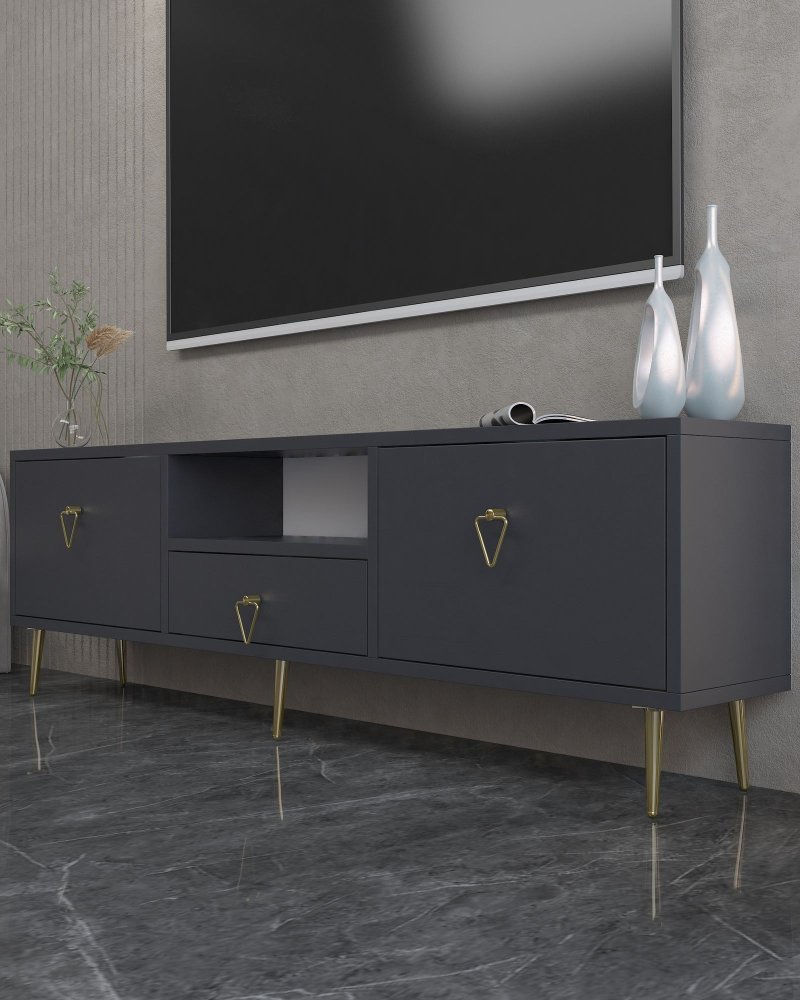 HANAH HOME TV polica 1306 DROP 1 Anthracite Gold