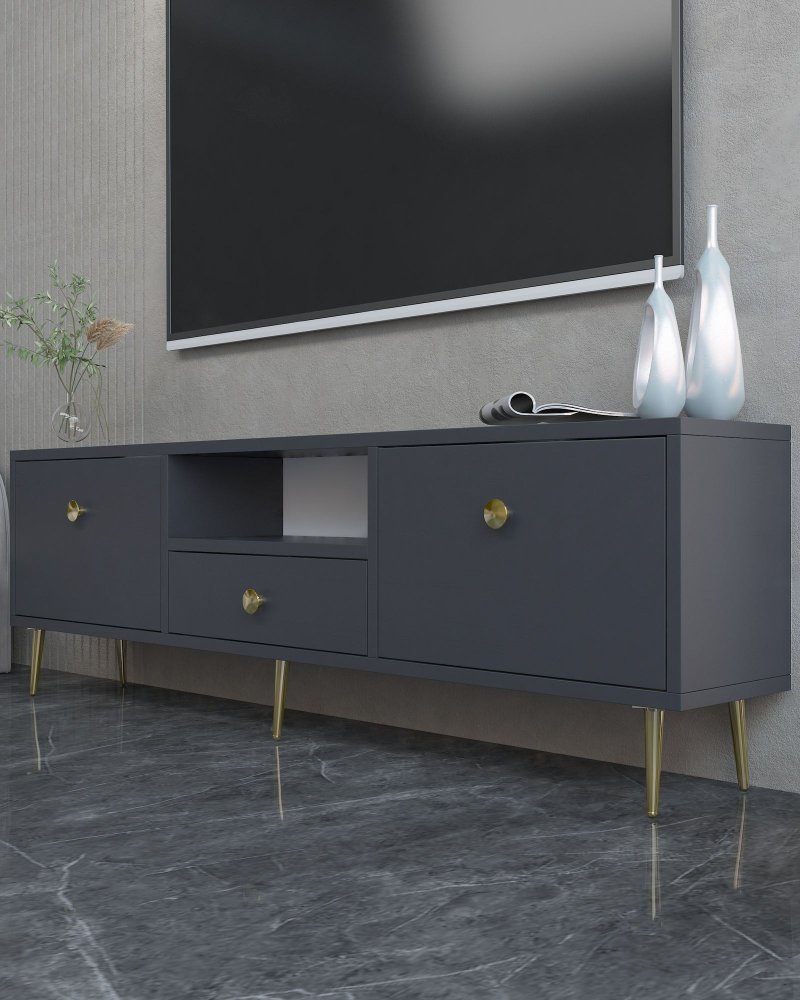 HANAH HOME TV polica 1307 DROP 1 Anthracite Gold