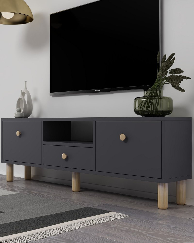 HANAH HOME TV polica 1310 DROP 1 Anthracite Sapphire Oak