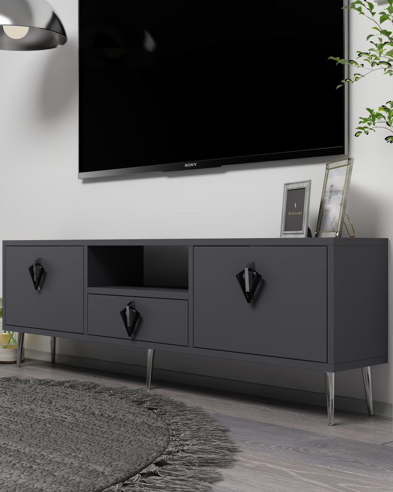 HANAH HOME TV polica 1312 DROP 32 Anthracite Black Silver