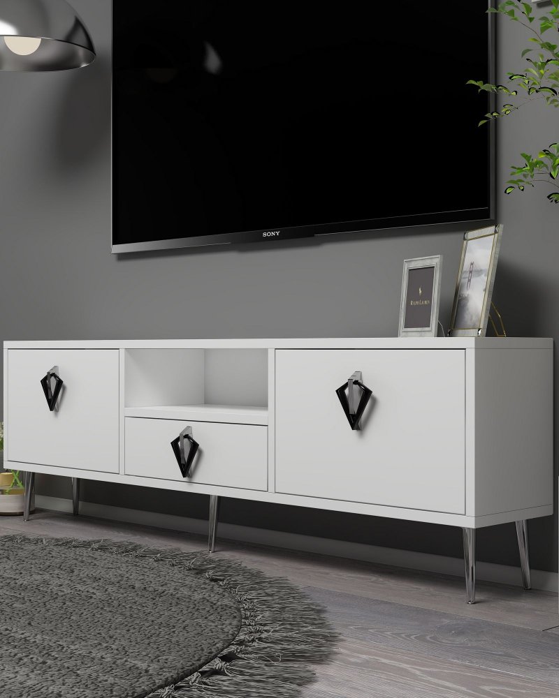 HANAH HOME TV polica 1312 DROP 32 White Black Silver