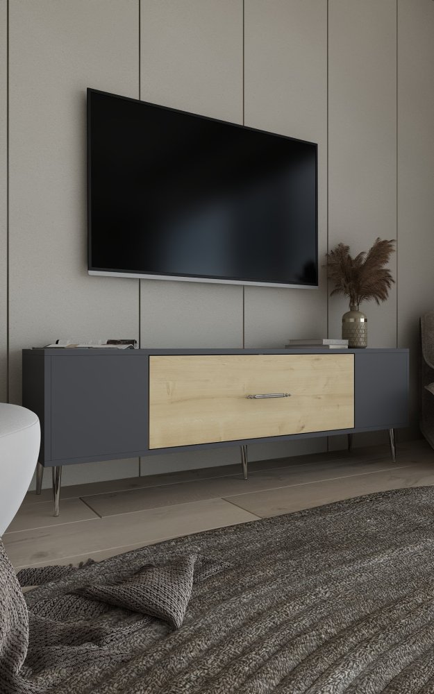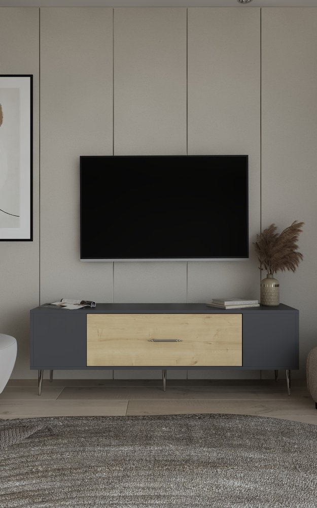 HANAH HOME TV polica Dekos Anthracite Sapphire Oak Silver