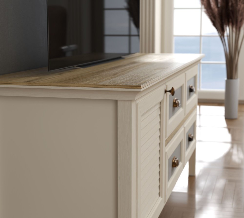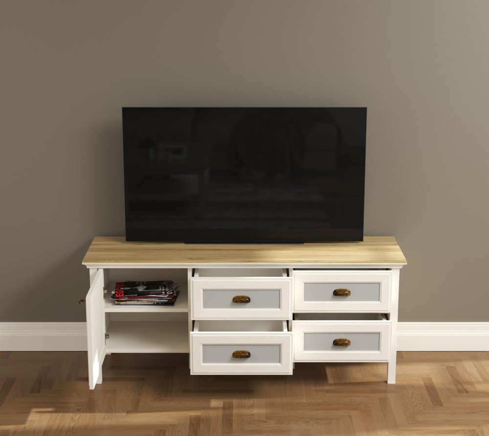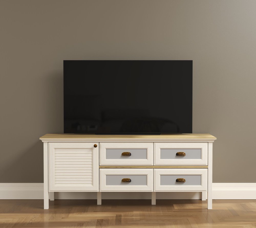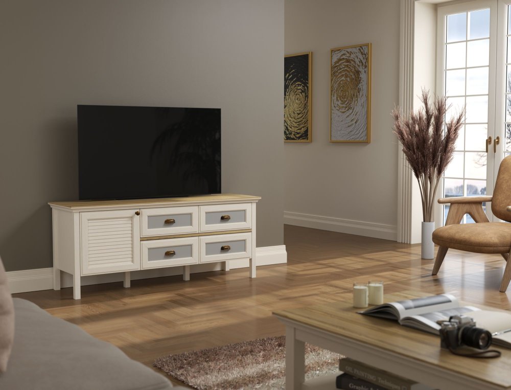 | Specifikacija | TV polica Materijal: 100% Iverica presvučena melaminom Debljina iverice: 18 mm Materijal vrata: 100% Medijapan Materijal nogara: Medijapan Materijal ručke: Metal Ivična traka: 0.8 mm Dimenzije: Širina: 149,6 cm Visina: 61,6 cm Dubina: 44,2 cm Visina nogara: 15 cm Dodatne funkcionalnosti: Više polica, mogućnost fiksiranja za zid |