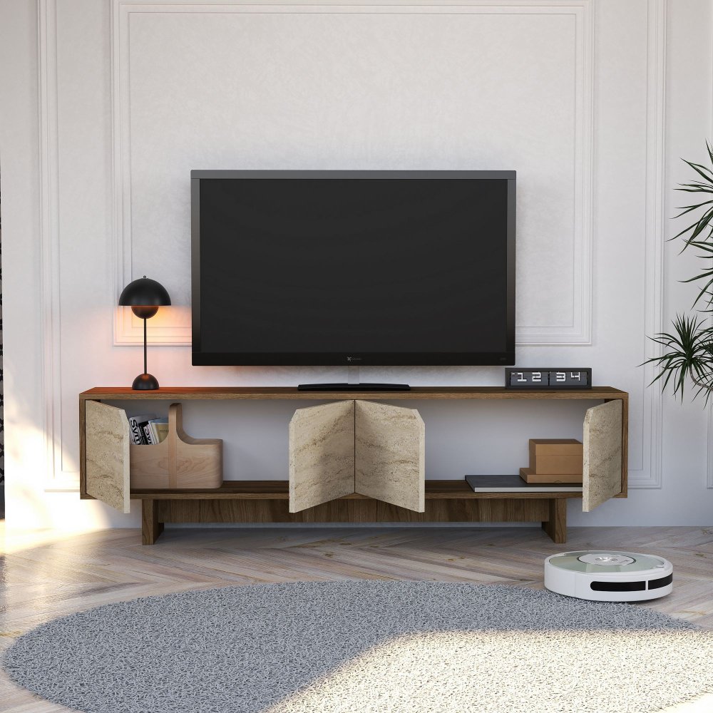 HANAH HOME TV polica Istemi Walnut Travertine