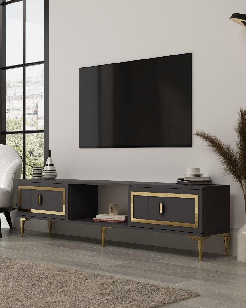 HANAH HOME TV polica Orion - Anthracite Gold
